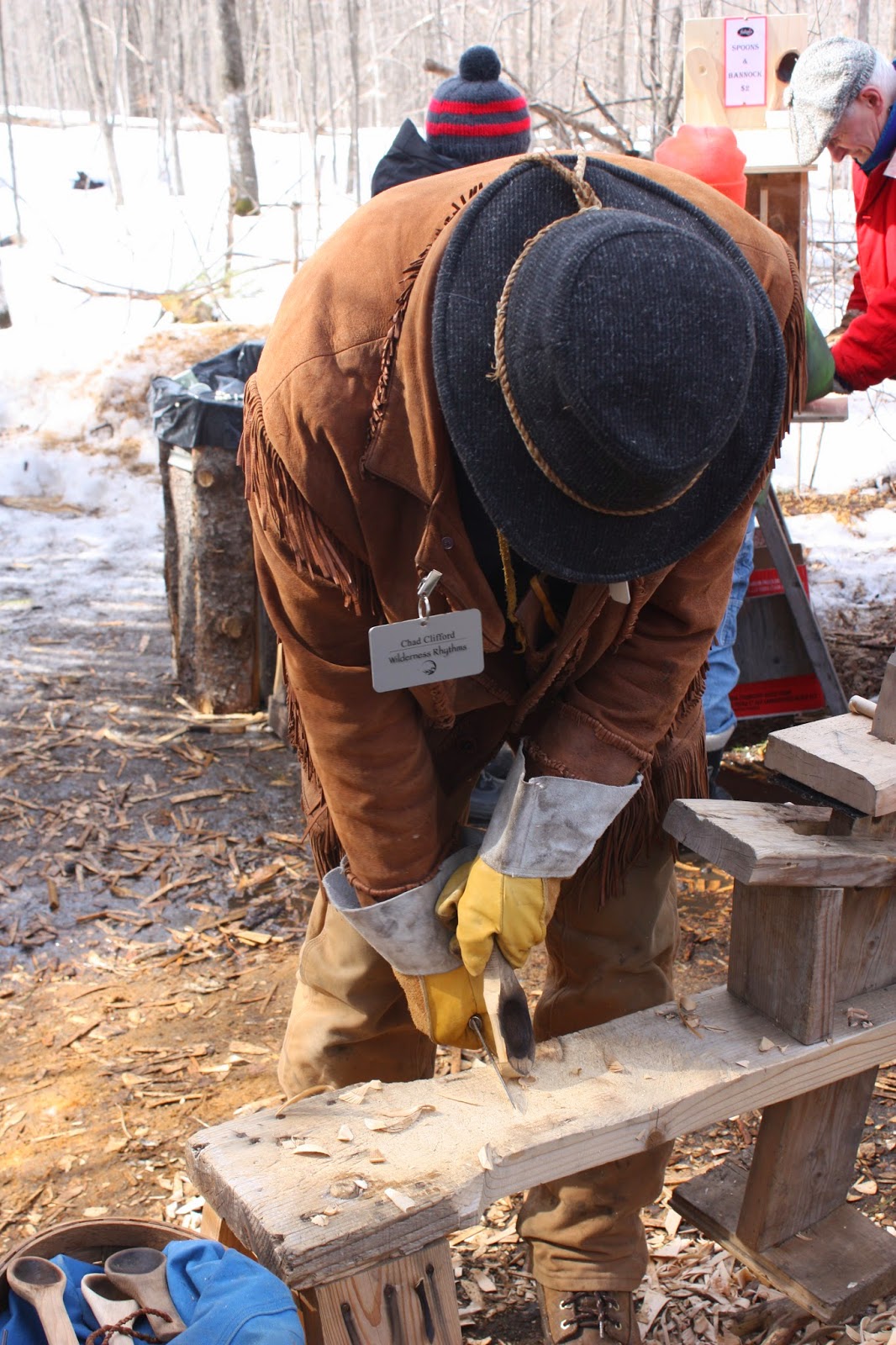 Tyvärr så var det ingen tillverkning igång, det var för kallt i luften.Det blev sked tillverkning istället. Man fick en bit glödande kol på en träbit som man fick blåsa på och som i sin tur bildade en grop.